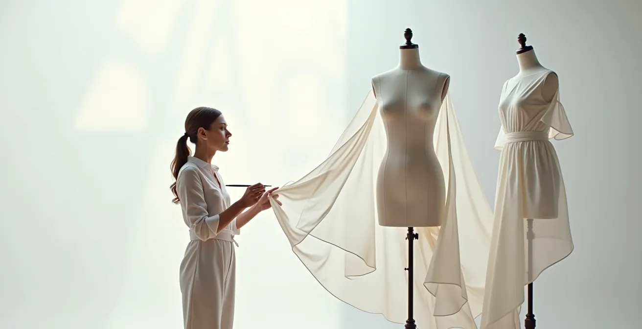 Every season, I see the same tragedy unfold. A junior designer arrives, portfolio brimming with breathtaking sketches—dramatic silhouettes, impossible drapes, lines that defy gravity. They are artists. But when that 2D fantasy meets the unforgiving reality of calico, it collapses into a mess of puckered seams and awkward volumes. The designer is crushed, convinced the pattern cutter « didn’t understand their vision. » The truth is harsher: the vision was never grounded in reality in the first place. The fundamental error is believing that fashion design is purely an act of drawing. It is not. It is an act of engineering.